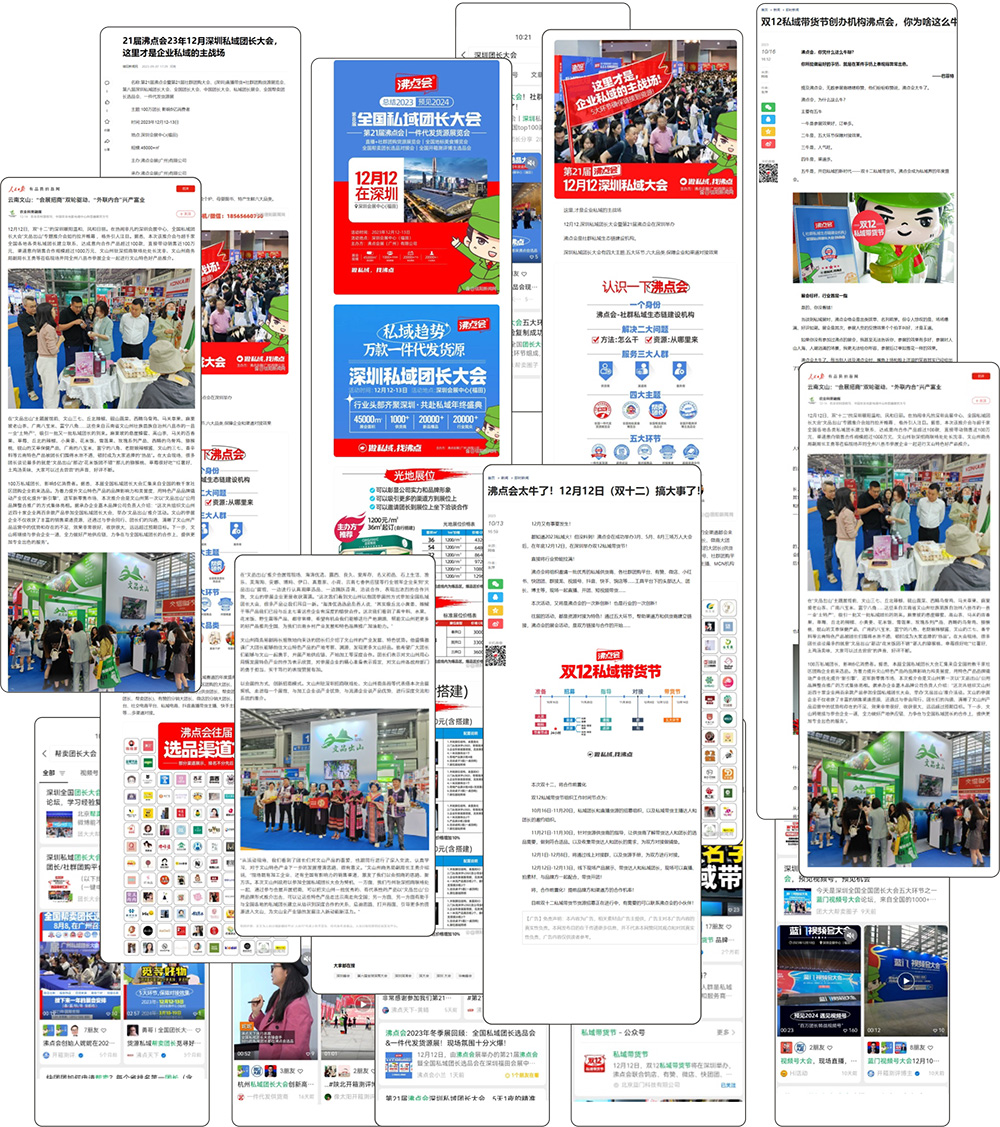 2023年12月12-13日,由沸點天下創辦,沸點會展舉辦的第21屆沸點會暨深圳全國團長選品會,全國私域大會,私域帶貨節在深圳會展中心(福田)1&2號館成功舉辦。